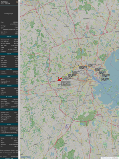 #a4034f #jbu831 #jetblue #bos #lga #planefence #adsb