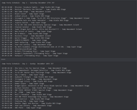 OK, friends! I've painstakingly translated the #JumpFesta schedule. Dates/times are in Japan time zone.