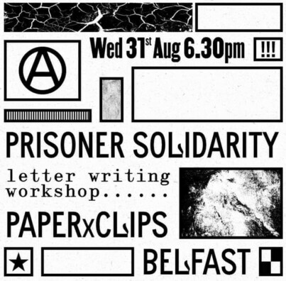 There'll be poems from prisoners, food from Food not Bombs Belfast & the opportunity to share solidarity messages with prisoners