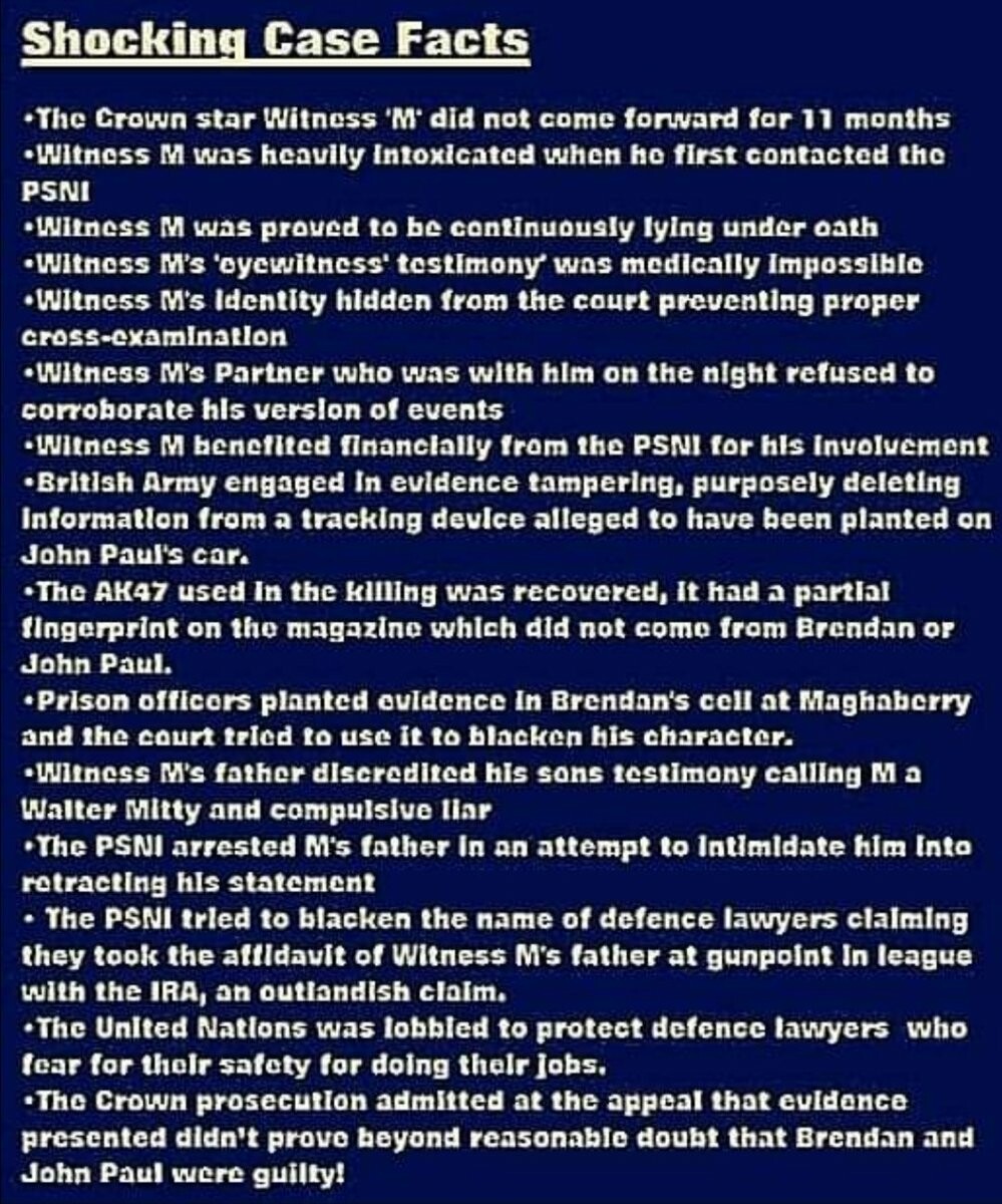 Justice for the Craigavon Two! There is no British justice, and the IWW demands the immediate release of FW John-Paul and Brendan. Miscarriage of justice prisoners serving sentences trumped up by security services and sentenced by a non-jury trial