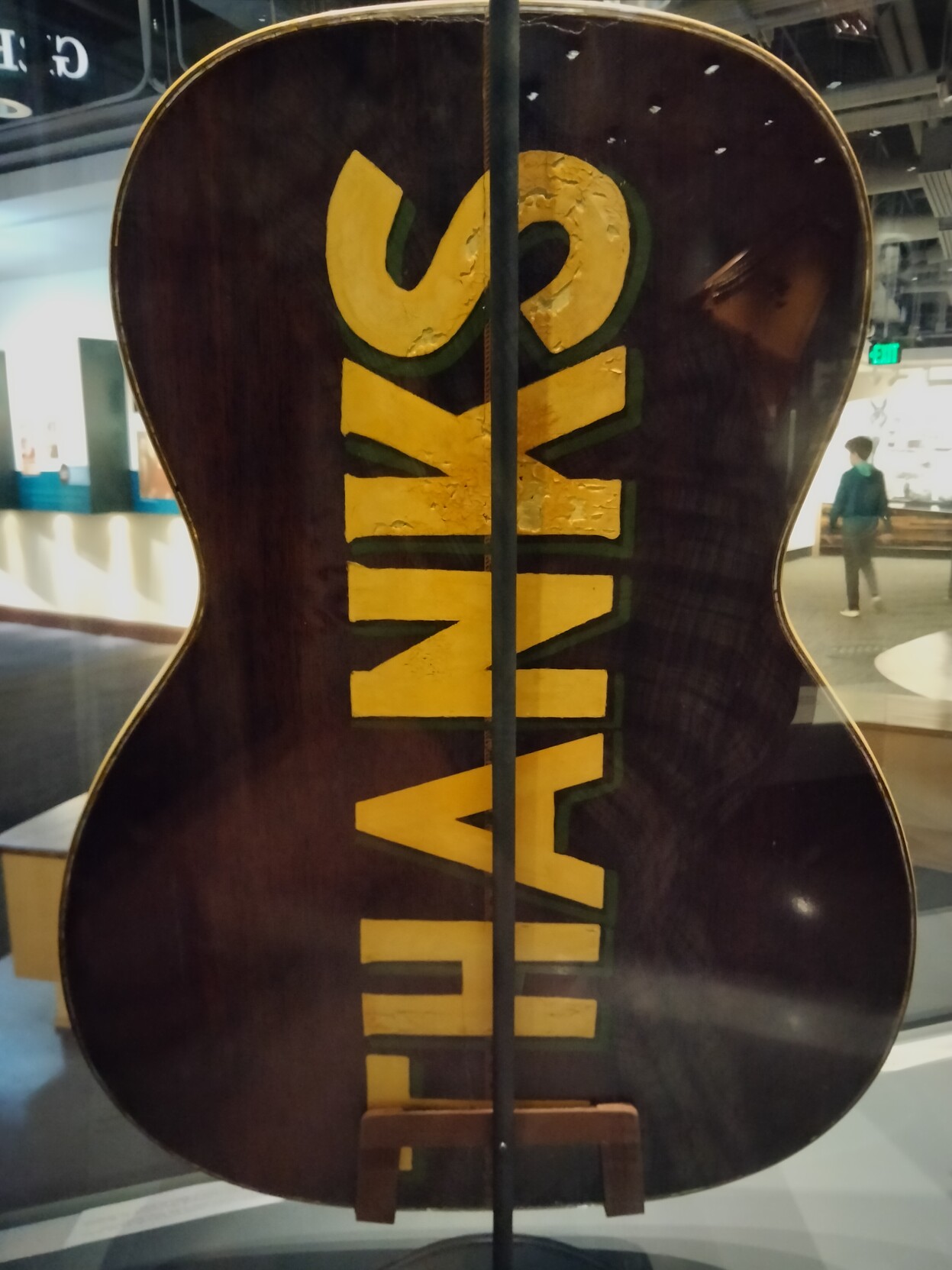 The back of the guitar used by #JimmieRodgers on display at the Birthplace of Country Music Museum