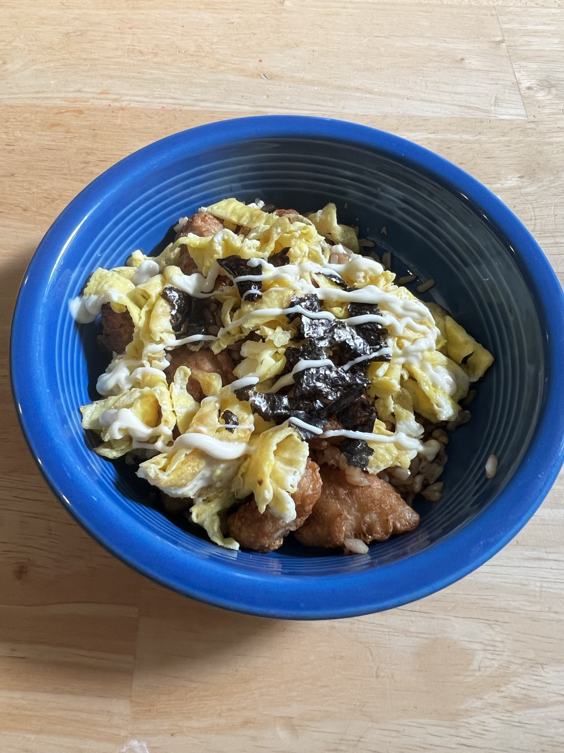 Finished my “chibap”! Yummy! It is a bit heavier fare with the breaded chicken and sweet cooking syrup…I want my tofu gimbap to balance it out 😁. Mayo is a nice tangy balance. I bought a new mayo brand (kewpie) recently, and it goes great with this!