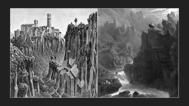 right (in inlay): Detail from the painting "#TheBard" (ca. 1817) by #JohnMartin (mirror view of a horizontally compressed detail).