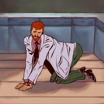 Doctor Quest tripped and needs the aid of his bicurious bodyguard to get back up!