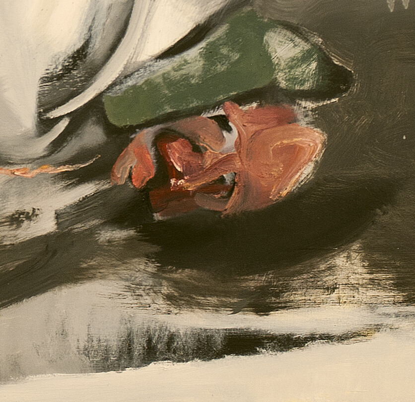Happy Saturday! Here is a detail on a 15' painting. One of my critics said that the ugliness of this face brought back some personal memories of someone getting beaten on. It was a great remark and something I still strive for in my mark making.