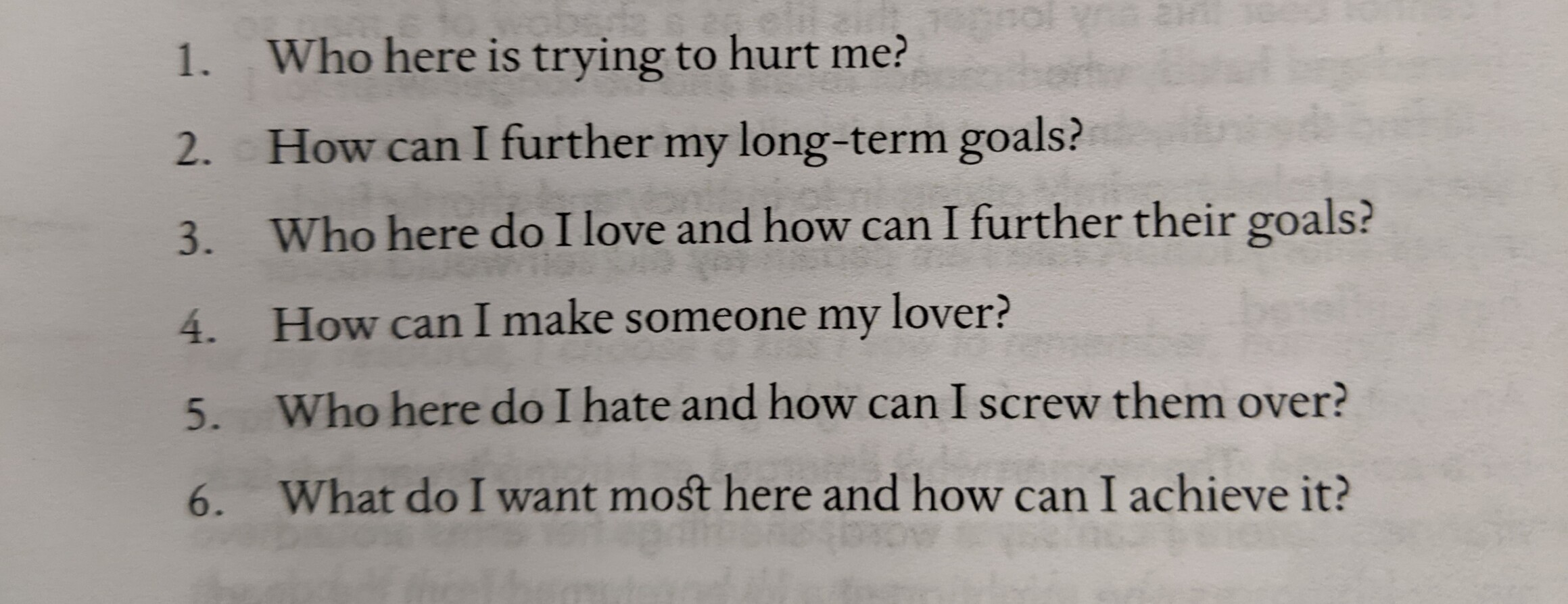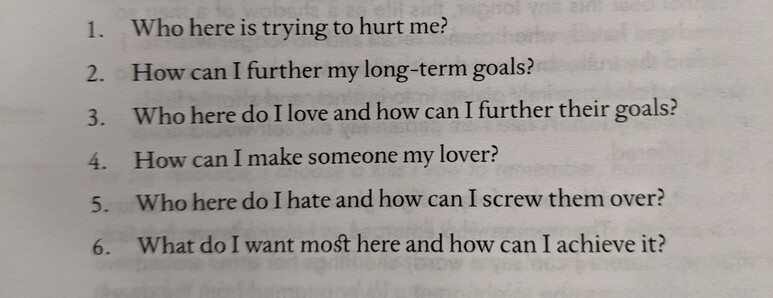 But what I've found playing journaling games is that I don't need to swap a world of toxic rewards for prosocial ones. What I need, what's immersive and affirming for me as a player, is to see who I am, who I would be, without control systems of contrived rewards and punishments at all. What choices would I make. What would my life be like.
