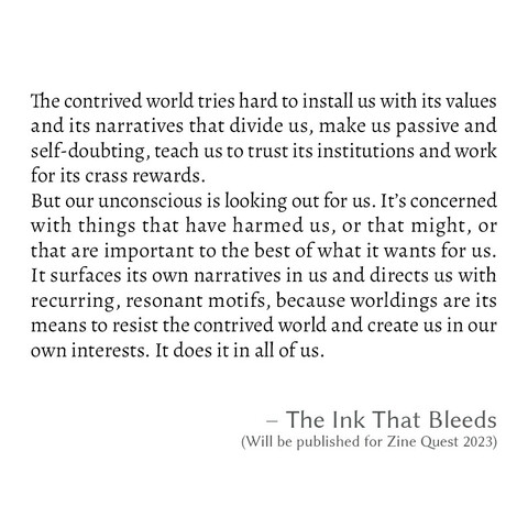 Okay, a third quote from The Ink That Bleeds, because I'm in the throes of it. One thing I write about is about what our unconscious is able to accomplish for us when we do journaling or journal gaming.