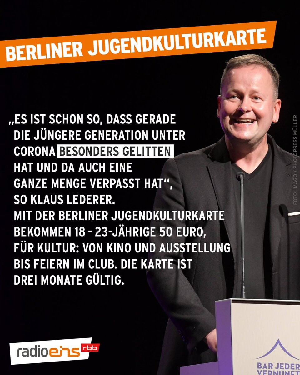 „Kulturelle Teilhabe ist mir ja sowieso ein großes Anliegen“, sagt @klauslederer@twitter.com. „Es ist einfach gut, wenn man niedrige Hürden für Kulturangebote gestaltet – insbesondere für die Jüngeren.“ Berlins Kultursenator stellt heute die #Jugendkulturkarte vor. https://www.radioeins.de/programm/sendungen/der_schoene_morgen/_/berliner-jugendkulturkarte-kommt.html