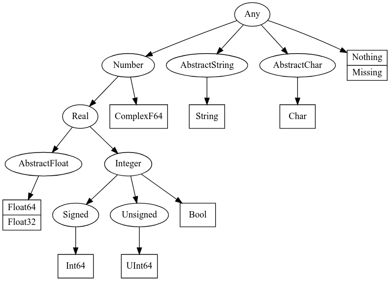 Episode 3 of @JuliaLanguage Journey is out. It is a short video about Julia types. Beginners will find it informative and intermediate users might like just to see how the type tree below is made.