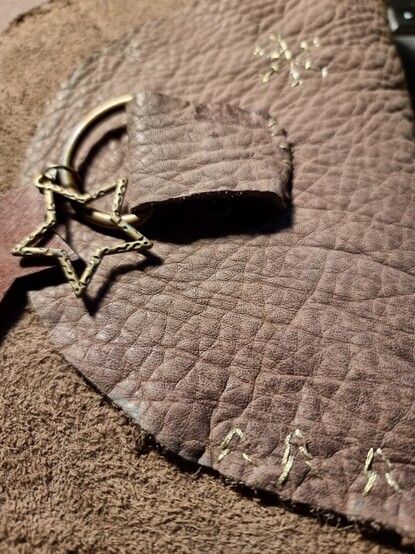 I took some time to try to embroider a bit on this old handbag turned into a book cover. The star on it is from an old necklace.