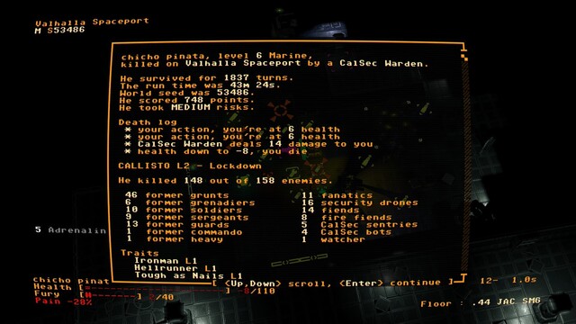 All the gory, Hellish charm(?) of DOOM packed into a classic roguelike package from a bygone era all while remaining extremely accessible to newcomers to the genre.