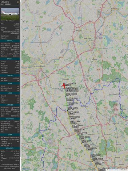 #c00b71 #jza605 #aircanadajazz #bos #yul #planefence #adsb