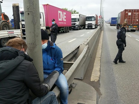 21/ Hier ist erst mal der gesamte Satz an Bildern zur Blockade der #Köhlbrandbrücke in #Hamburg.