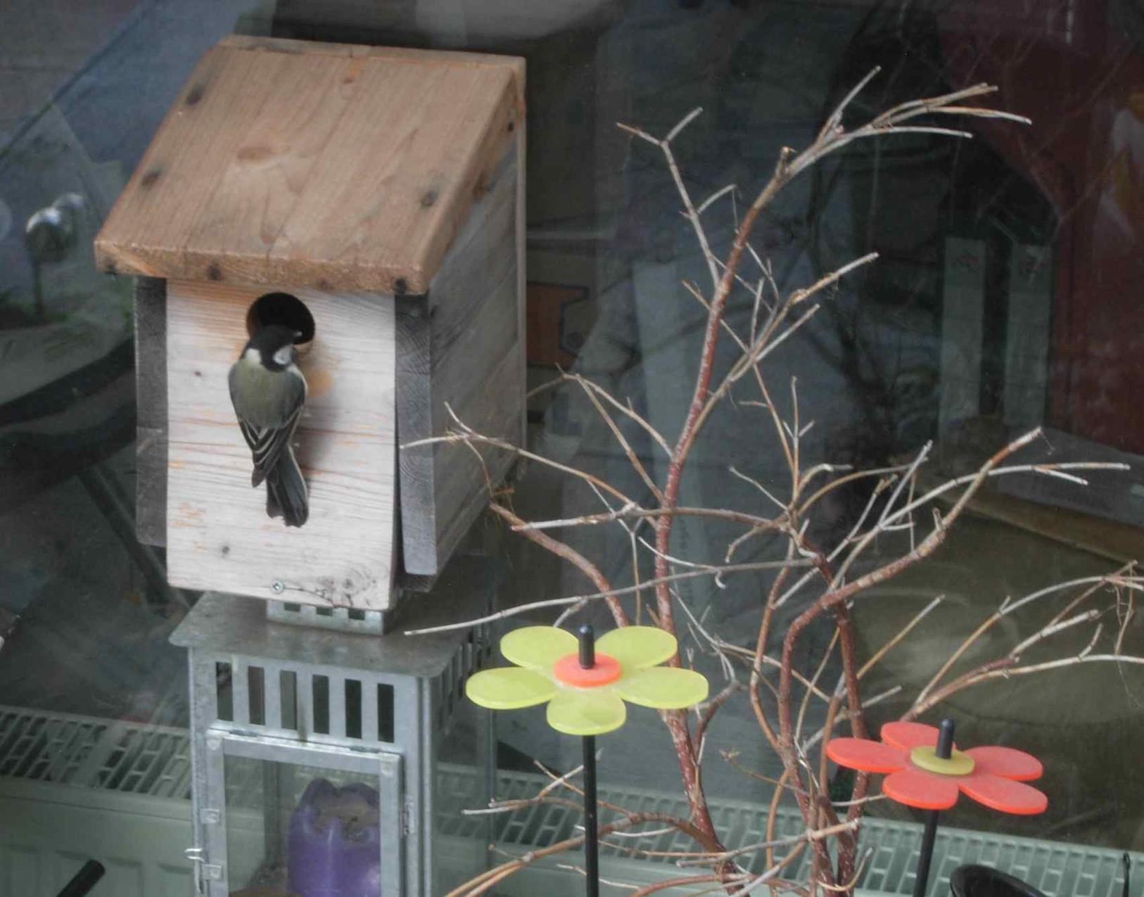 Heute hockt eine #Kohlmeise wieder im Kasten und plustert sich fauchend, wenn ich mich nähere...
