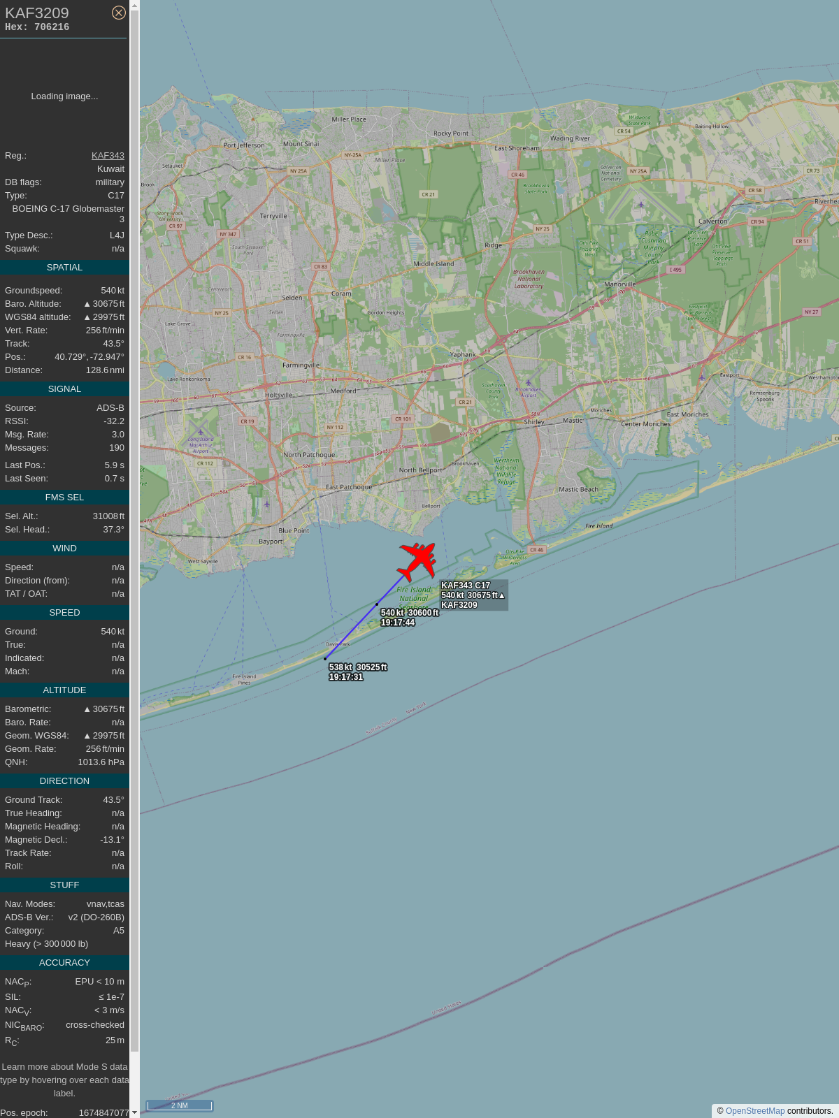 #PlaneAlert ICAO: #706216 Tail: #KAF343 Flt: #KAF3219