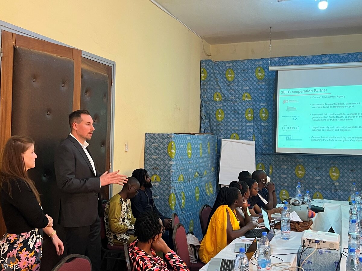 Prävention von Pandemien: Die „Schnell Einsetzbare Expert*innengruppe Gesundheit“ #SEEG schult in #Kamerun Laborpersonal im Erkennen von Ausbrüchen von u.a. Vogelgrippe & #COVID19. Begleitet wird das @giz_gmbh-Team von Expert*innen von @Loeffler_News, @BNITM_de & @ChariteBerlin.