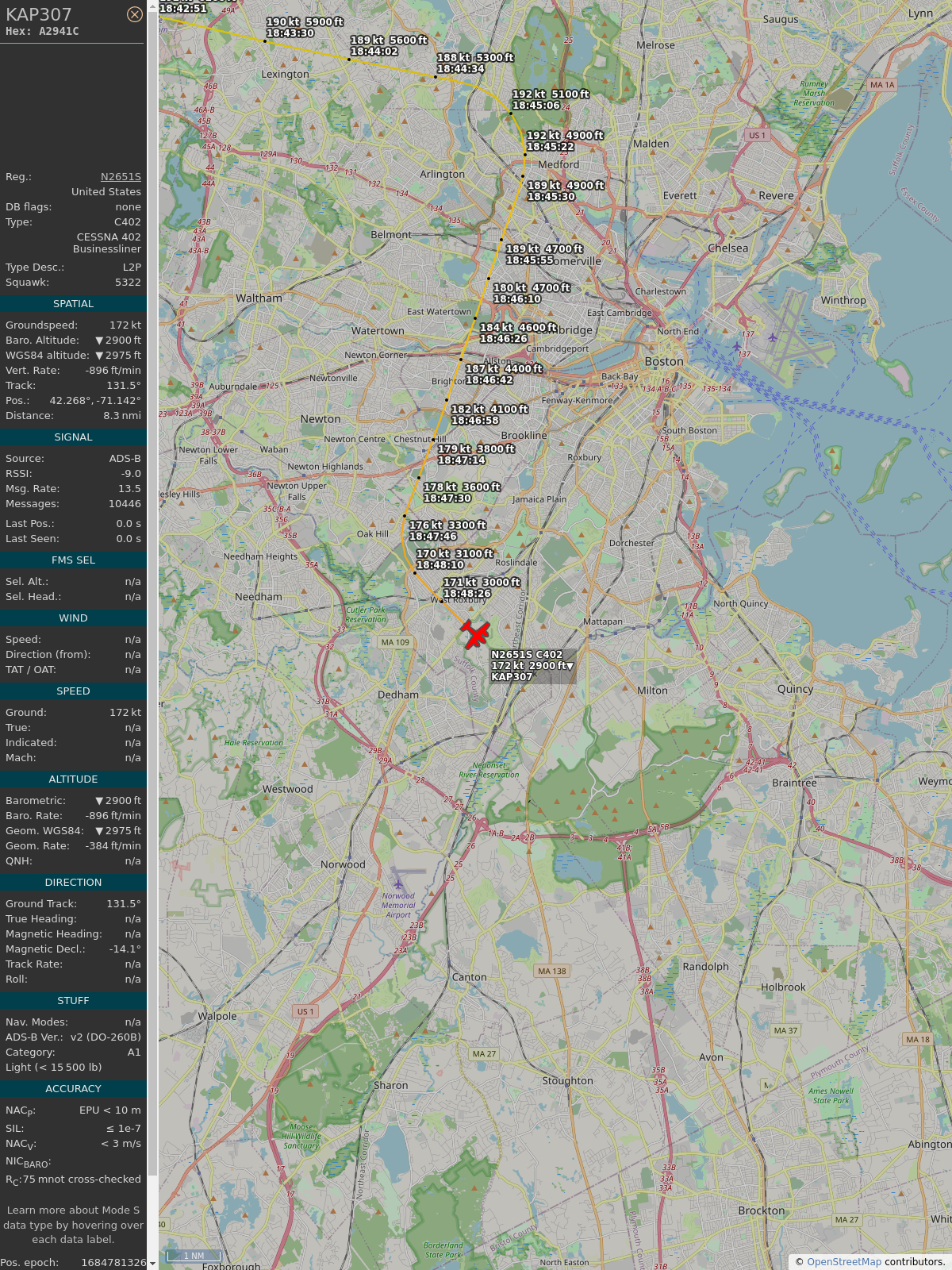 #a26dfb #kap307 #capeair #rkd #bos #planefence #adsb