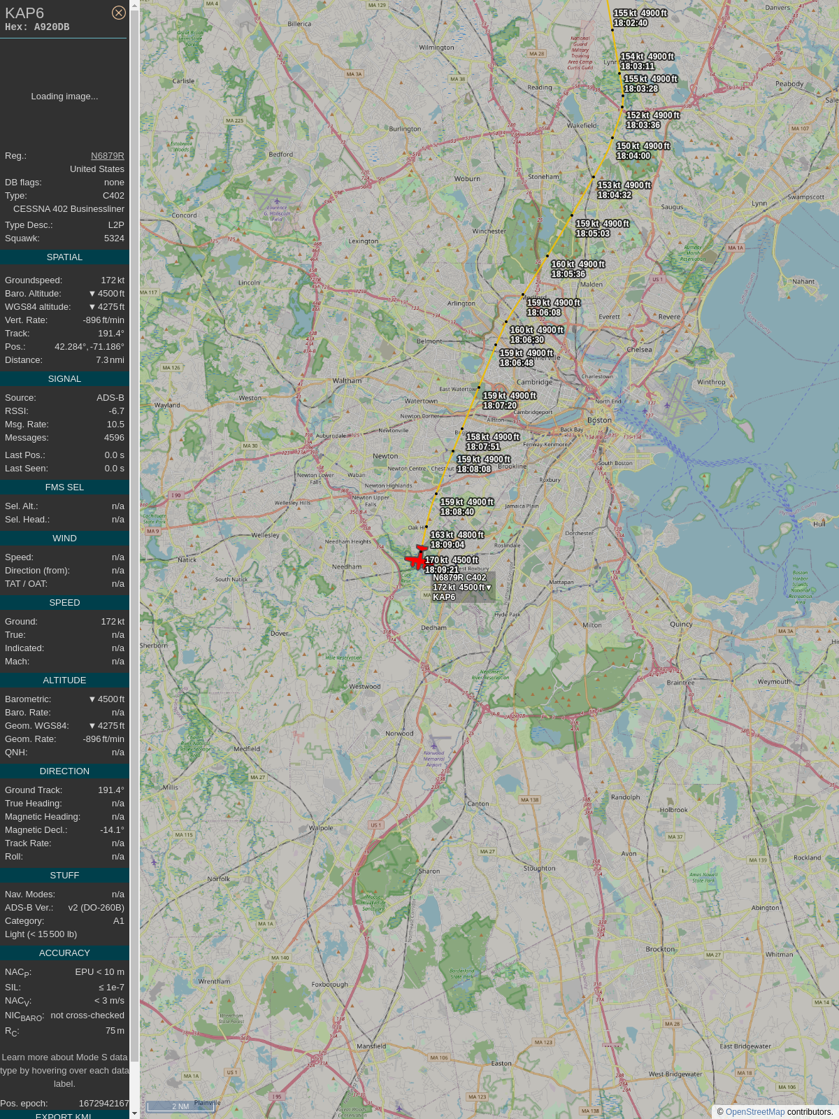 #a2941c #kap6 #capeair #ack #bos #planefence #adsb