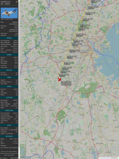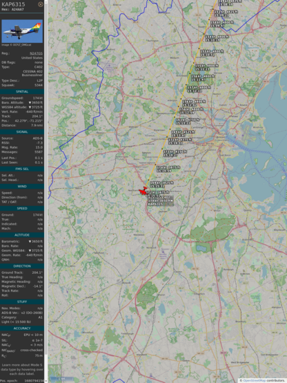 #a697fd #kap6315 #capeair #bos #rkd #planefence #adsb
