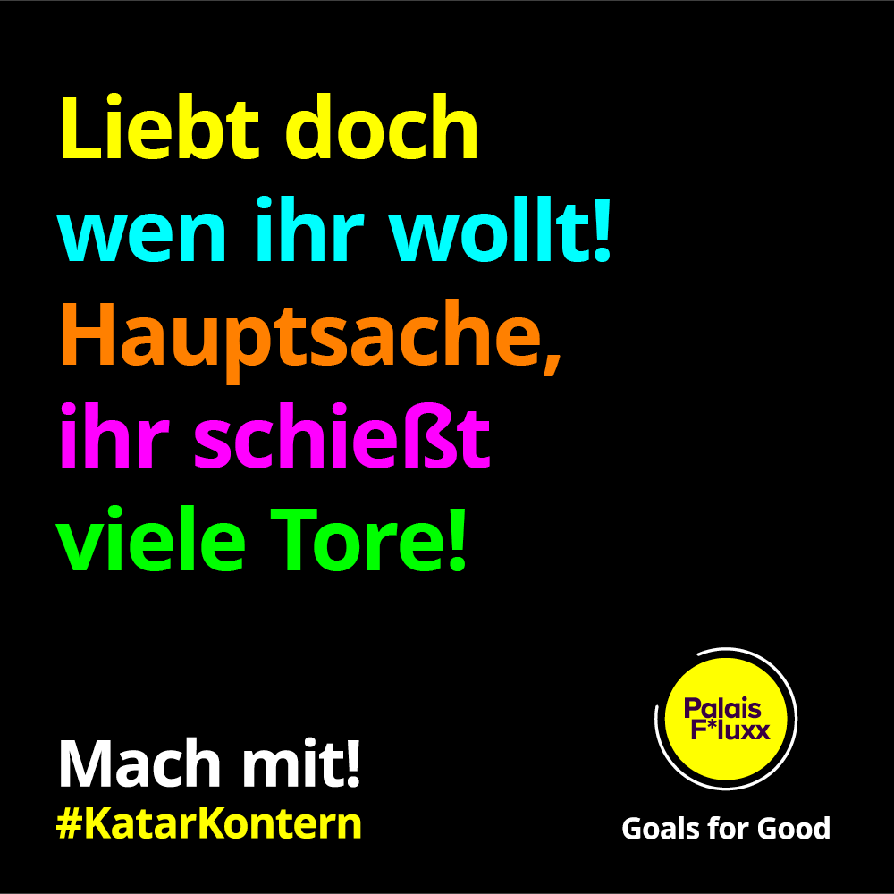 Kommt, lasst uns die ⚽️WM zu was Positivem drehen: Der @palaisfluxx startet #KatarKontern. Für jedes gefallene Tor wird 1 € an die Berliner NGO @DiscovFootball gespendet. Deren Ziel: Frauen weltweit durch Fußball stärken. http://palais-fluxx.de/fussball-wm-ka…