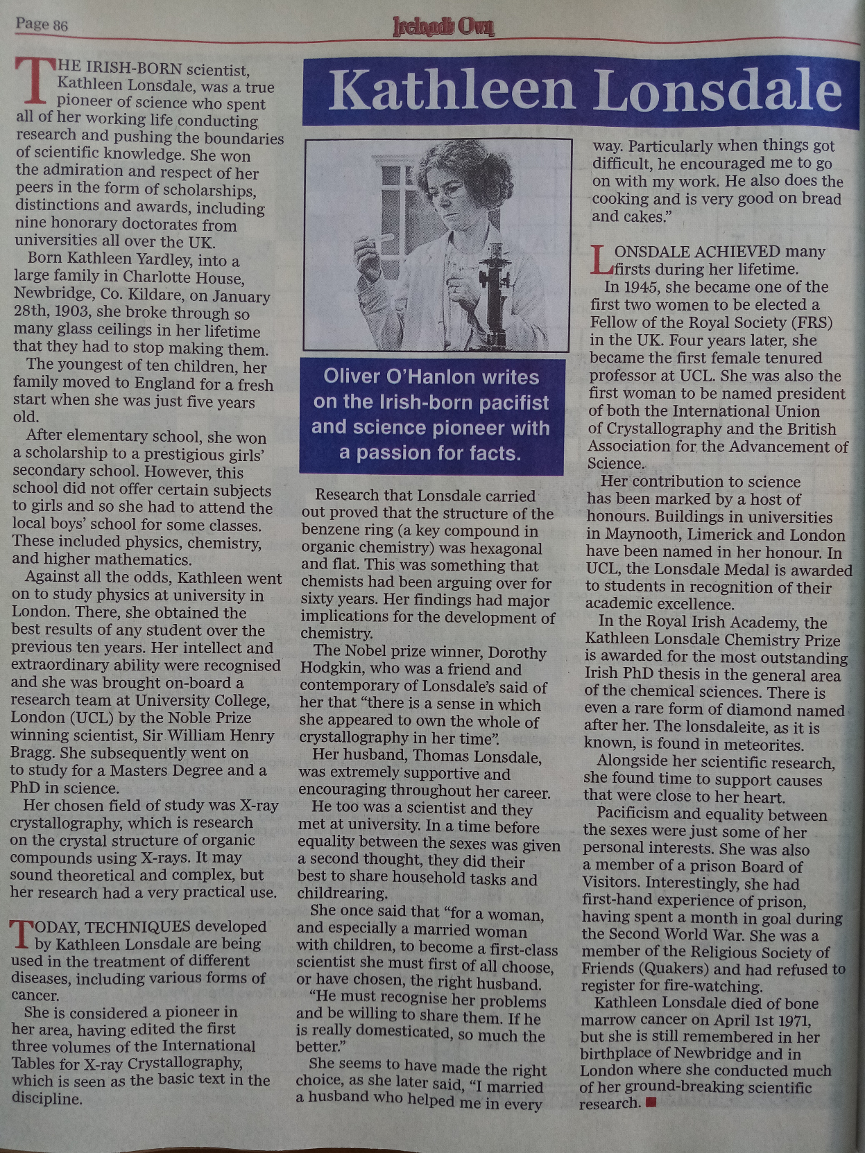 For #WomenInScience day - an article I wrote for @irelandsown1902 a couple of years ago about the scientist Kathleen Lonsdale (1903-1971).