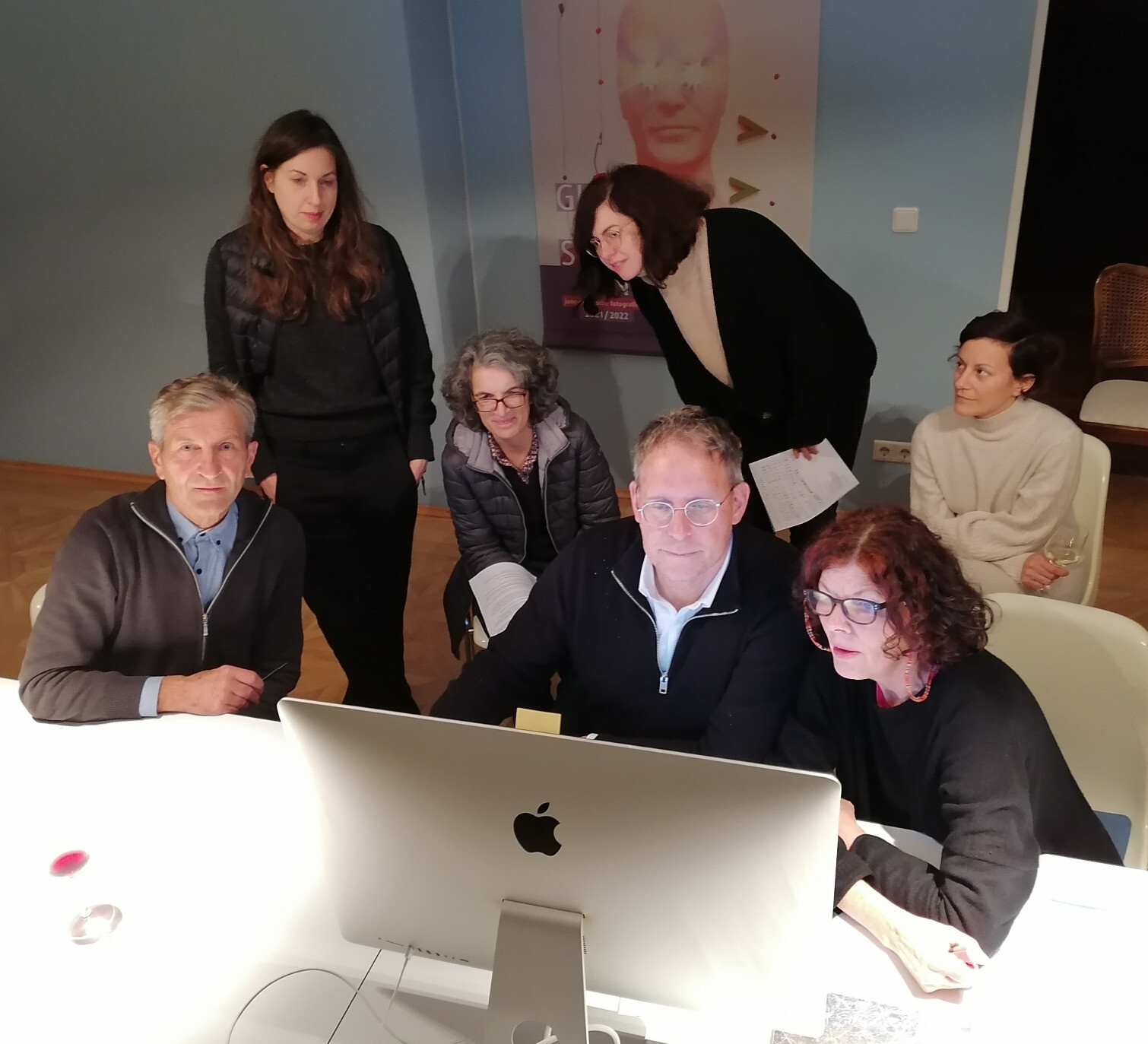Die noch wache #Jury waltet weiterhin ihres #Amtes (v.l.): Alex Hanimann, Frauke Schnoor, Katrin Seidel, Amélie Schneider, Josefine Raab + Christina Werner.