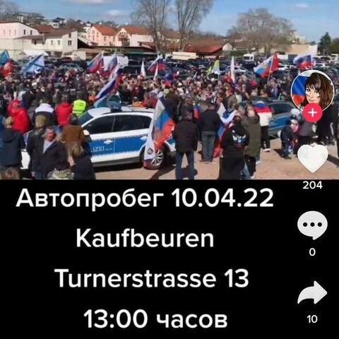 Von wegen »gegen die Diskriminierung von Russen« in Deutschland. Auf einer Flagge beim Autokorso in #Kaufbeuren heißt es etwa wie schon in der Mobilisierung: »Vorwärts Russland!« Und nach schneller Übersetzung: »Lass ihre feinde umkommen«! !B