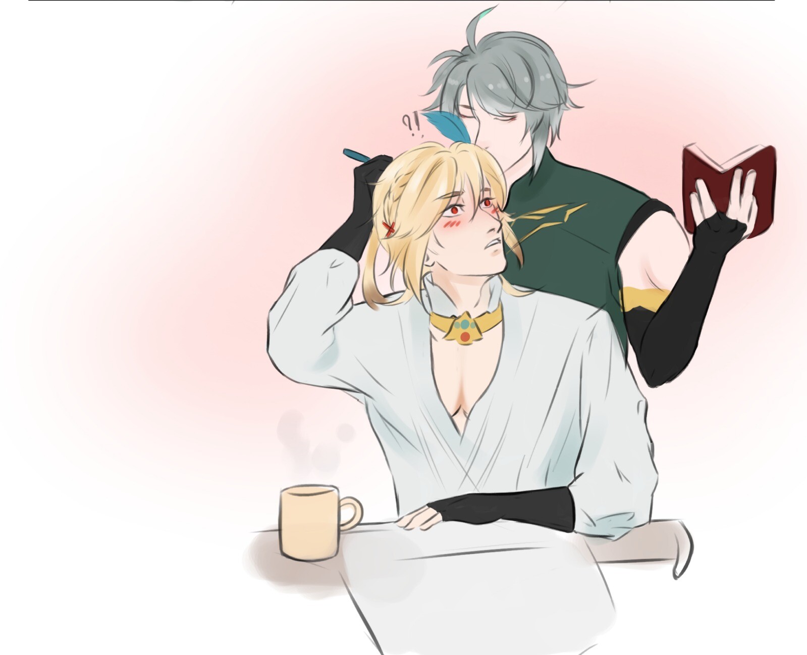 #drawing #digital #art #artwork #artist #illustration #painting #halfbody #flatcolor #genshin #genshinimpact #kaveh #alhacen #alhaitham #kavetham #haikaveh #human #humanoid #male #men #csp #clipstudiopaint