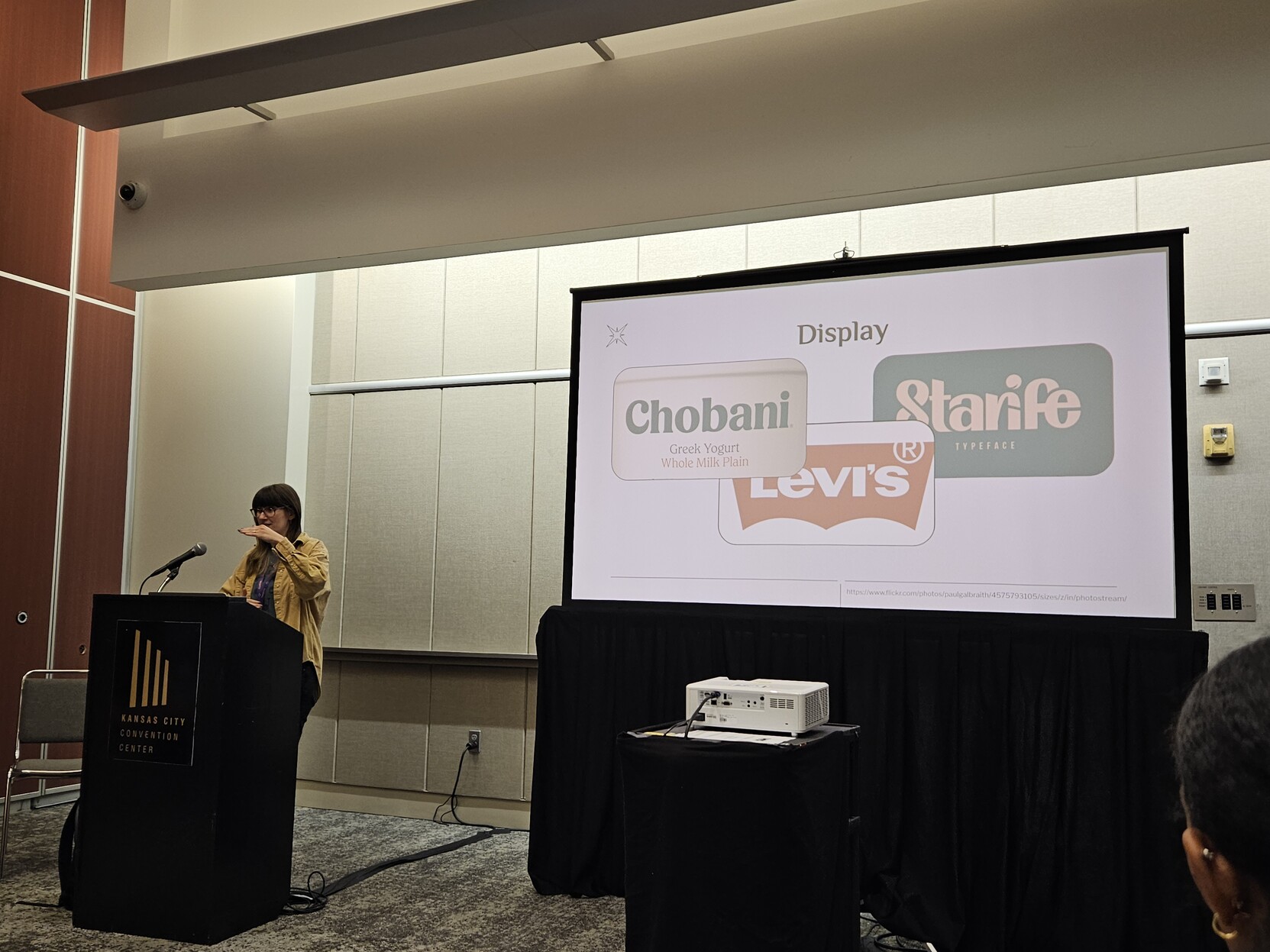 Use display fonts for headers, not body text, because they aren't particularly readable. - Kathryn Grayson Nanz #kcdc