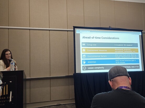When preparing to teach, think about who you're teaching to and what condition they're in so you can tailor your presentation to the abilities and limitations of the audience. - Tori Brenneison #kcdc