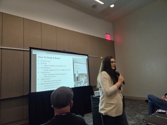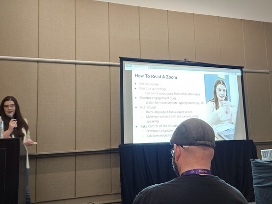Watch for people unmuting in Zoom because if someone is wanting clarification badly enough to hop off mute that's significant. And watch for typing indicators/chat. And look at the camera rather than the screen when presenting. - Tori Brenneison