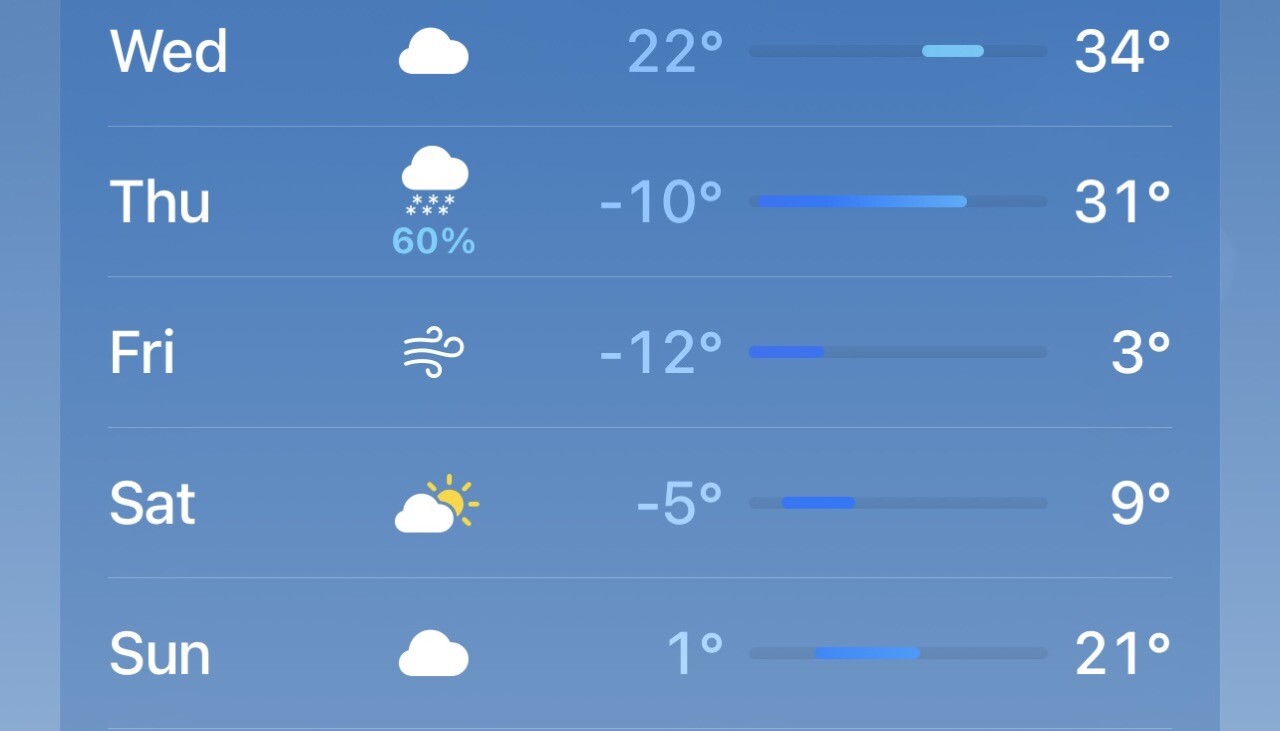 Hello from Kansas City, MO metro where the “feels like” temperature is 5°F/-15°C warmer than Fairbanks, AK and 107°F/ 42°C colder than Miami, FL.