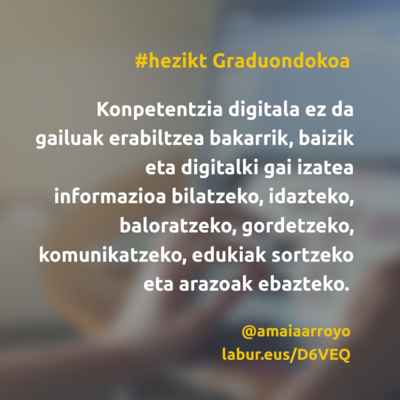 #hezikt graduondokoan Konpetentzia Digitalen marko orokorrarekin buru-belarri lanean aste osoan zehar. https://www.unibertsitatea.net/blogak/ueu365/2017/07/11/amaia-arroyo-tresna-digitalek-ematen-dituzten-aukera-guztiak-ez-ditugu-aprobetxatzen/ … #KDigitala #KDbidean