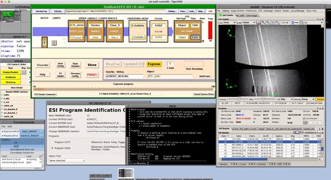 What the control screen of the #Keck telescope is showing while it's slewing to the new target: stars trailing in the guide camera view on the upper right.