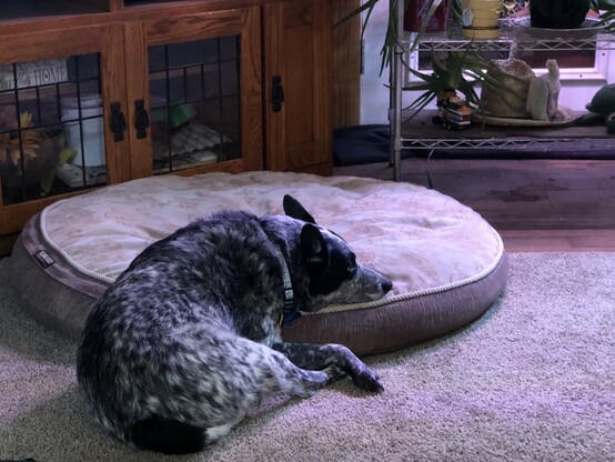 It cracks me up the old man pup uses a chin rest๐ ๐ #AlaskaPets #KensDog
