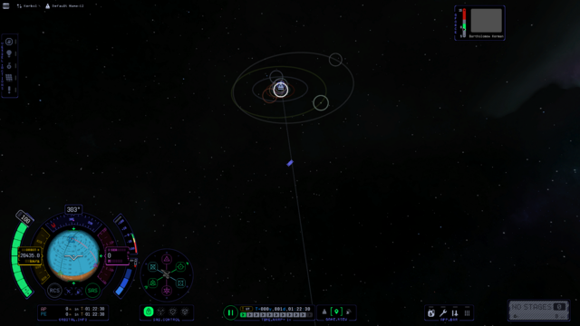 I loaded up the space station segments that I had built in my first go-around. After some careful maneuvering, I linked up two pieces in orbit and de-orbited the booster for the second piece. Switched back to my shiny new space station, and...