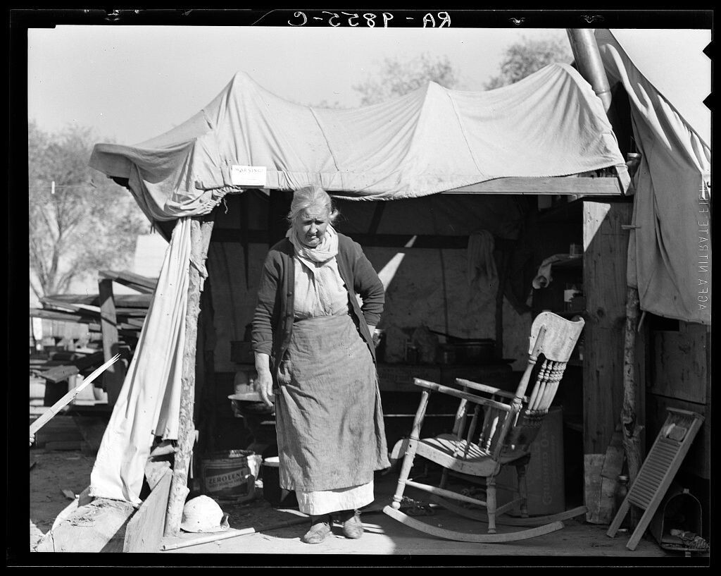 Grandmother of twenty-two children from farm in #Oklahoma. Now living in #Kern migrant camp, #California