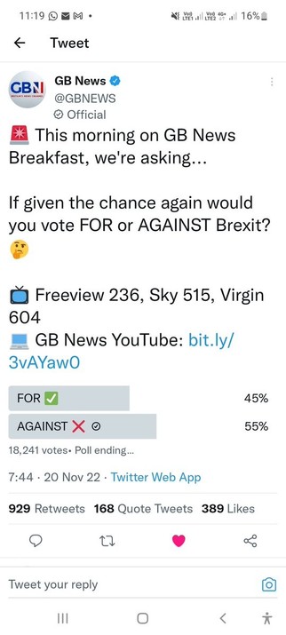 This poll didn't go the way #KGBNews wanted. I wonder how they are going to spin it or will they just delete it? @gbnews@twitter.com #nigel_farage
