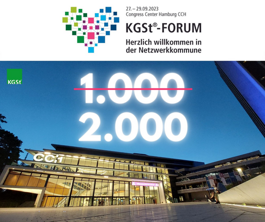Der nächste Meilenstein auf dem Weg in die #Netzwerkkommune ist erreicht! Fünf Wochen nach Buchungsstart sind bereits 2.000 Anmeldungen für das KGSt®-FORUM 2023 in Hamburg eingegangen. 💚 #kgstforum23