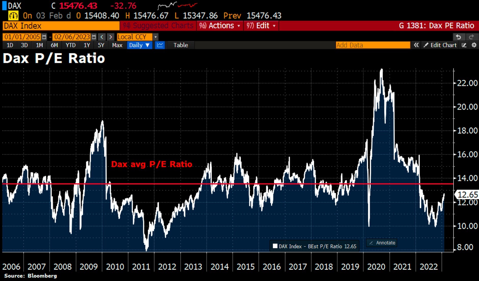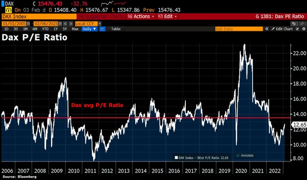 Alle 40 #Dax-Titel werden nun mit einem durchschnittlichen #KGV von ~12,7 gehandelt, was in etwa dem langfristigen KGV-Durchschnitt von 13,5 entspricht. Die Rally seit Oktober bei zugleich stabilen Unternehmensbewertungen ist auf diesen steilen Anstieg zurückzuführen.