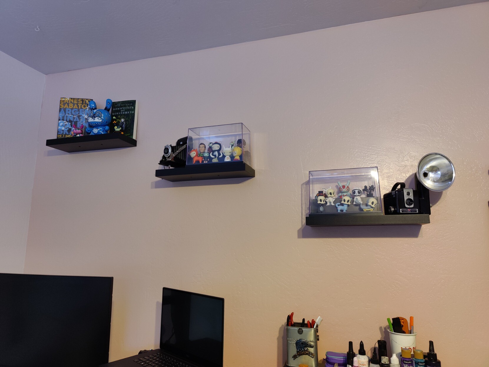 I managed to do something today so now i can go back to being useless! Put these shelves up and unpacked my long packed kid robot+ figurines. And a place to look at my, very much used regularly, cameras. #kidRobot #KathieOlivas #TaraMcPherson #JonBurgerman I wish I had the money for more! I used to have dozens but years living in an RV whittled my collection down.