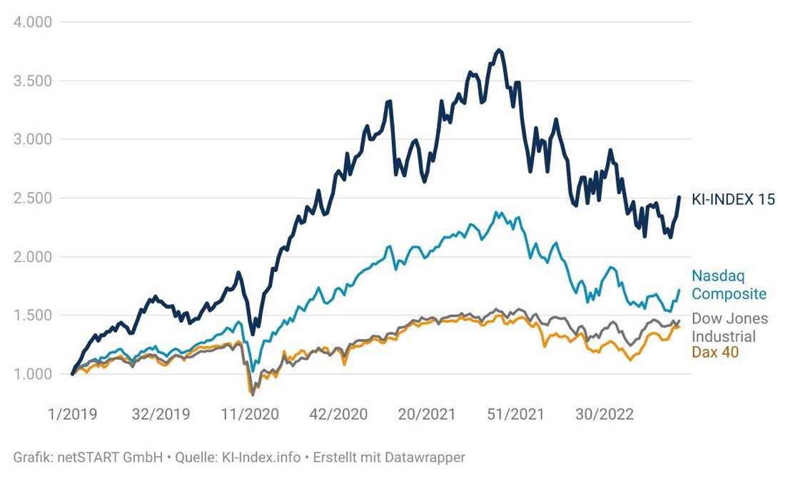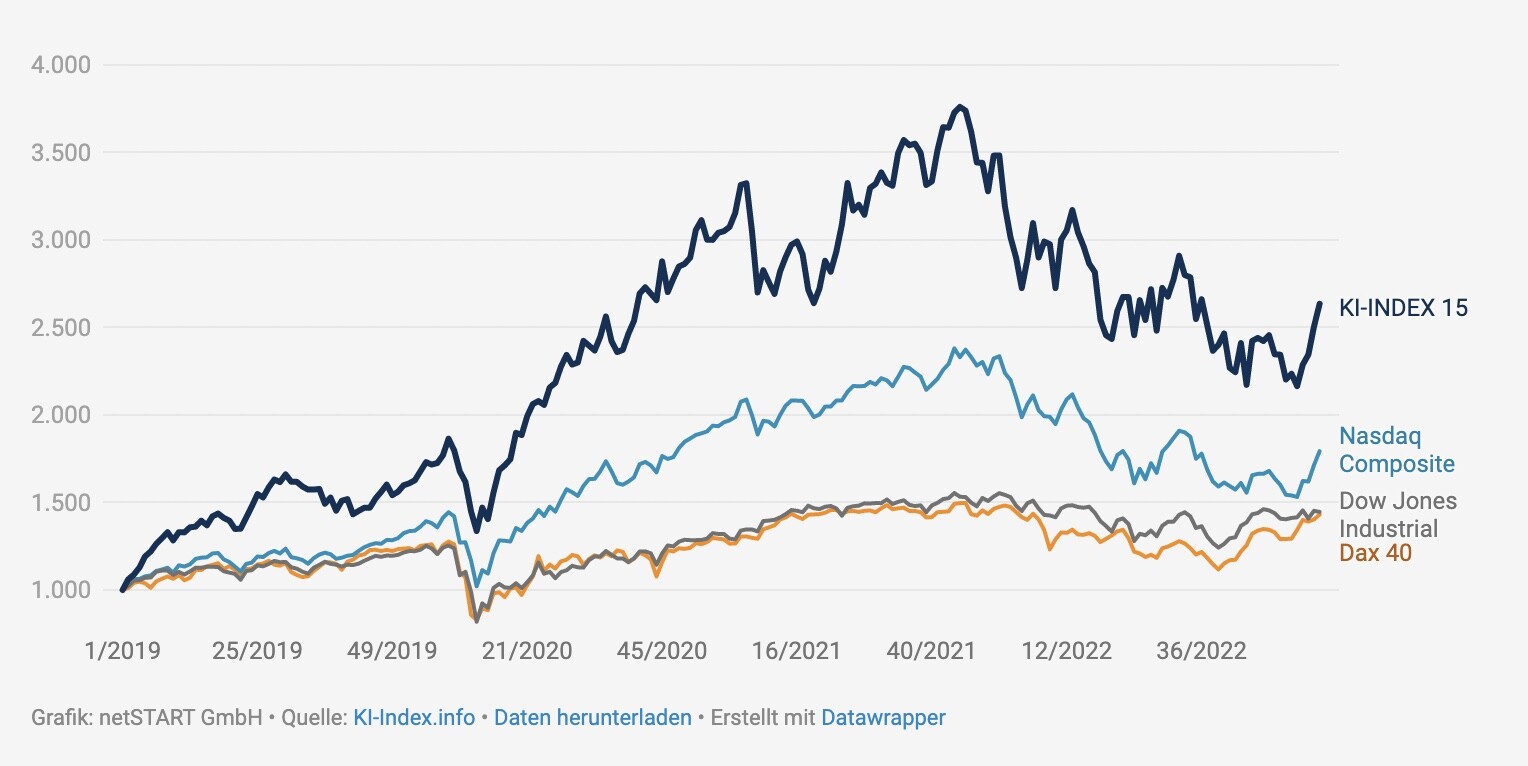 #ChatGPT beflügelt eine ganze Branche und sorgt (neben anderen Effekten) mit dafür, dass die Aktien von KI-Unternehmen laut unserem #KIINDEX wieder stärker gefragt sind. Der KI-INDEX 15 umfasst aktuell fünfzehn börsennotierte Unternehmen, welche Künstliche Intelligenz (KI) in Form von Produkten, Software oder Systemen entwerfen, erstellen, integrieren oder bereitstellen.