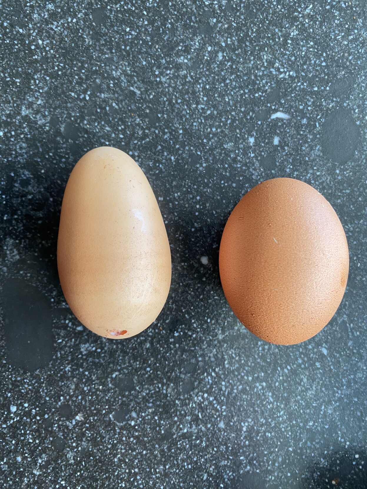 Een van onze kippen heeft weer een bizar ei gelegd…langwerpig! @Katrien #kippentoot