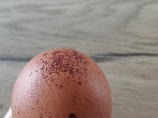 Het gaat hier om calcium afzetting. Dat betekent dat je kip ofwel te veel calcium binnen krijgt, ofwel door een teveel aan vitamine D. Of gewoon door een foutje in het legproces.