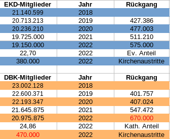 * zusammen mit der EKD wären das dann insgesamt 860.000 mit Tendenz höher.