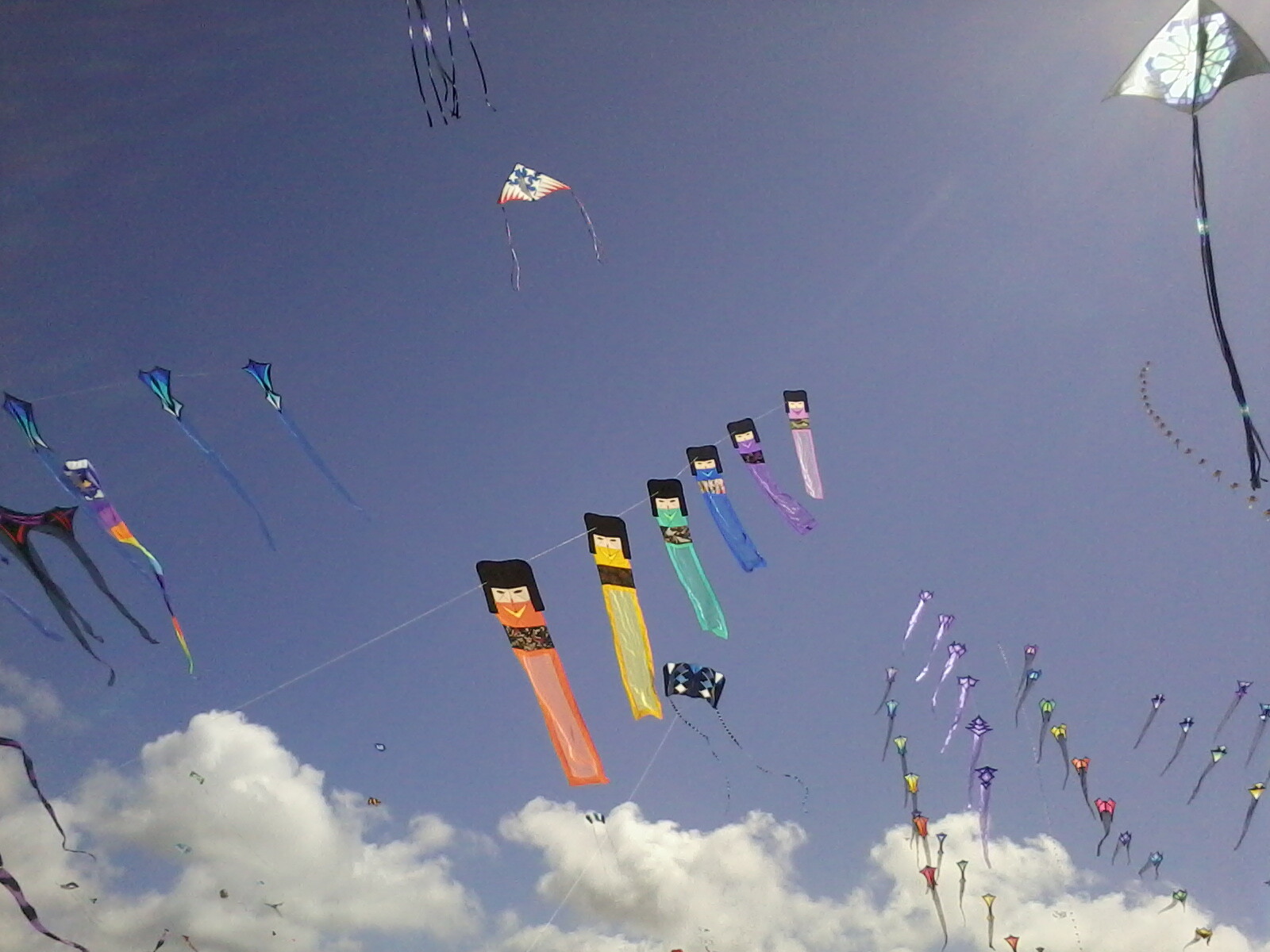 #HappyKiteDay from Saturday at the Washington State International Kite Festival. Today we had the Parade of Colors (banners), the Cody Fly (Cody war kites), and the Flat and Bowed Kites Mass Ascension, as well as numerous sport flier ballet in both 2 and 4 line kites and pairs or teams. The wind has been light to medium, rarely exceeding 7mph. Temperatures are in the 70s, overcast sky, horizon to horizon, but it makes a nice break from the past several days.