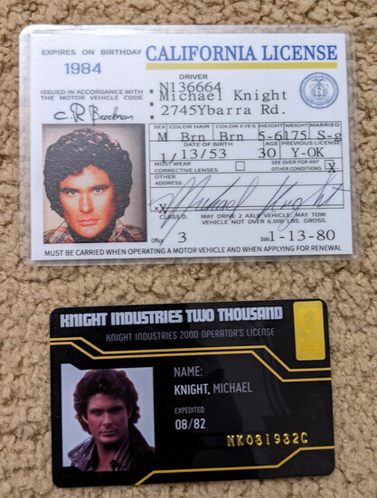 Lately, everybody seems to be asking the same question: which ID card for Michael Knight (#DavidHasselhoff 's character in #KnightRider) should I be carrying on my person at all times?