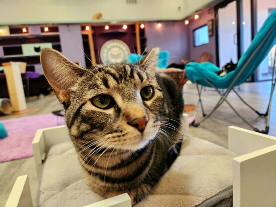 Luckily, the kitty café has plenty of professional nappers. The cats are pretty much all hard at work practicing foe thr big games.