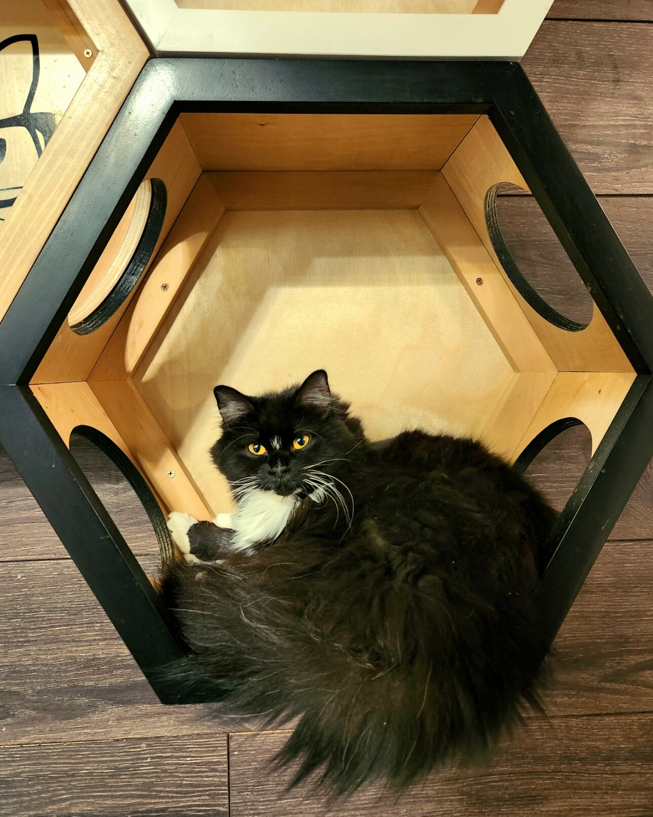 Ruthie recently took up sewing and crocheting and has been working diligently at making adorable sock hats for all the other cats.