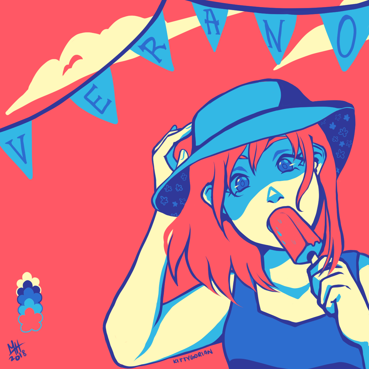 #kittygorian #MastoArt #creativetoot #originalart #oc #summer #verano #challenge